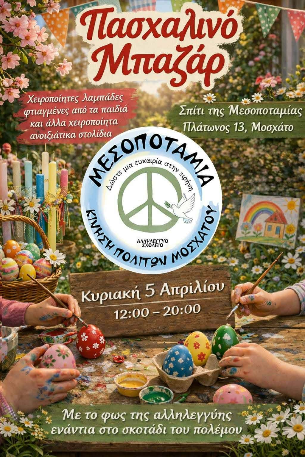 Πασχαλινό Μπαζάρ του Αλληλέγγυου Σχολείου Μεσοποταμίας Κυριακή 5 Απριλίου 12:00 – 20:00 Σπίτι της