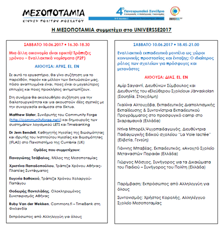 Η Μεσοποταμία συμμετέχει στο workshop για τις τράπεζες χρόνου και σε δύο συζητήσεις για τα αλληλέγγυα σχολεία.
