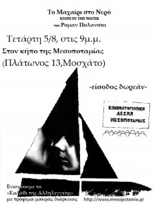 Κινηματογραφική Λέσχη Μεσοποταμίας: «Το μαχαίρο στο νερό» του Ρομάν Πολάνσκι