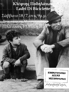 Σαν θερινό σινεμά, κάθε ΤΕΤΑΡΤΗ στις 21.00, για όλο το καλοκαίρι, η ΚΙΝΗΜΑΤΟΓΡΑΦΙΚΗ ΛΕΣΧΗ της ΜΕΣΟΠΟΤΑΜΙΑΣ, θα διοργανώνει προβολές ταινιών, για να φωτίσει το κομμάτι του παγκόσμιου κινηματογράφου, που […]