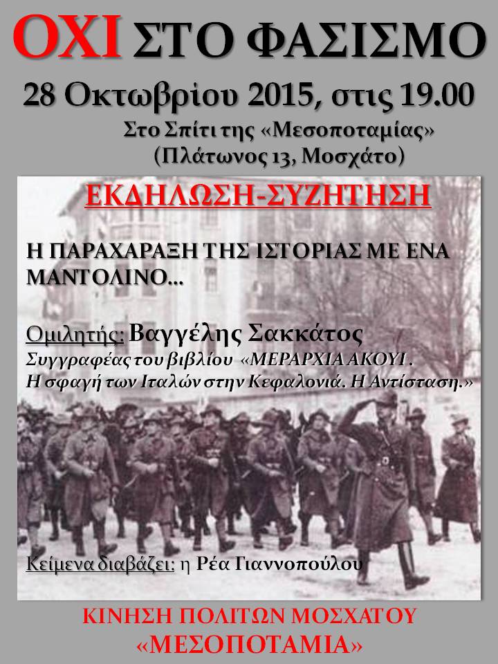 28 Οκτωβρίου 2015 στις 19.00 στο σπίτι της Μεσοποταμίας, Πλάτωνος 13 Μοσχάτο