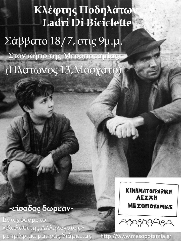 Η εξαιρετική ταινία του Βιτόριο Ντε Σίκα, που θεωρείται μια από τις κορυφαίες ταινίες του ευρωπαϊκού κινηματογράφου, κέρδισε το ειδικό βραβείο Όσκαρ για καλύτερη ξένη ταινία 7 χρόνια πριν καθιερωθεί αυτή η κατηγορία. Ένας άνεργος ιταλός βρίσκει μια δουλειά που απαιτεί ποδήλατο αλλά για κακή του τύχη, κάποιος του το κλέβει την πρώτη του μέρα στην δουλειά . Μαζί με τον νεαρό του γιο, ξεκινούν μια μανιώδη αναζήτηση για να βρουν τον κλέφτη και στην πορεία θα πάρουν πολλά μαθήματα από την ζωή.