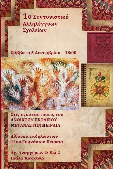 Πρώτη συνέλευση του Συντονιστικού των Αλληλέγγυων Σχολείων το Σάββατο 5/12/2015, στις 6μ.μ., στο Ανοιχτό Σχολείο Μεταναστών Πειραιά (Αγ. Αναργύρων και Κω, Παλιά Κοκκινιά)