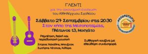 Το Αλληλέγγυο Σχολείο Μεσοποταμίας γιορτάζει την έναρξη της 13ης χρονιάς λειτουργίας του! Το Σάββατο 27 Σεπτεμβρίου στις 20.30 στον κήπο της Μεσοποταμίας (Πλάτωνος 13, Μοσχάτο) διοργανώνουμε γλέντι με ήχους από […]