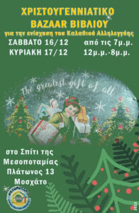 Στο πλαίσιο των χριστουγεννιάτικων δράσεων του Αλληλεγγυου Σχολείου Μεσοποταμίας διοργανώνεται χριστουγεννιάτικο bazaar βιβλίων, στολιδιών και παιχνιδιών. Αγοράζουμε με ελεύθερη συνεισφορά για την ενίσχυση του Καλαθιού Αλληλεγγύης. Σάββατο 16/12 από τις […]