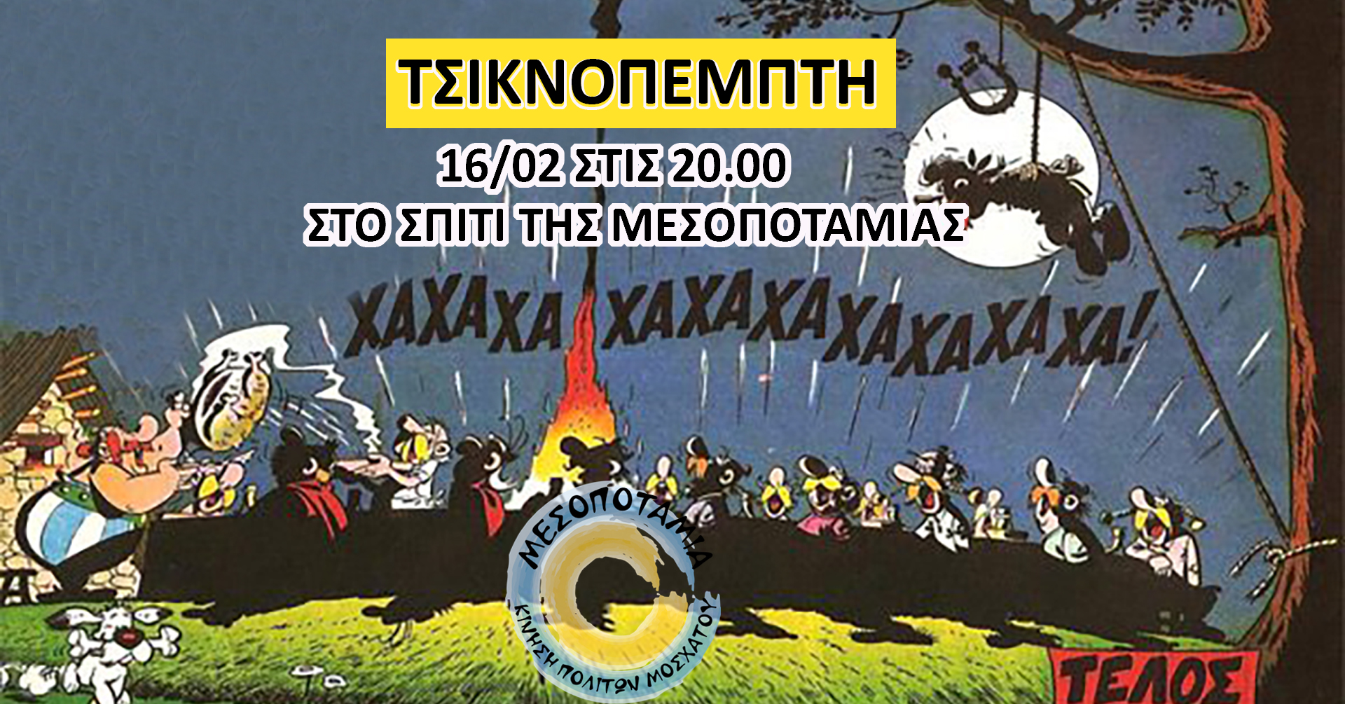 H Μεσοποταμία τηρεί το έθιμο της Τσικνοπέμπτης με ρεφενέ γλέντι στο σπίτι της, Πλάτωνος 13 στο Μοσχάτο.