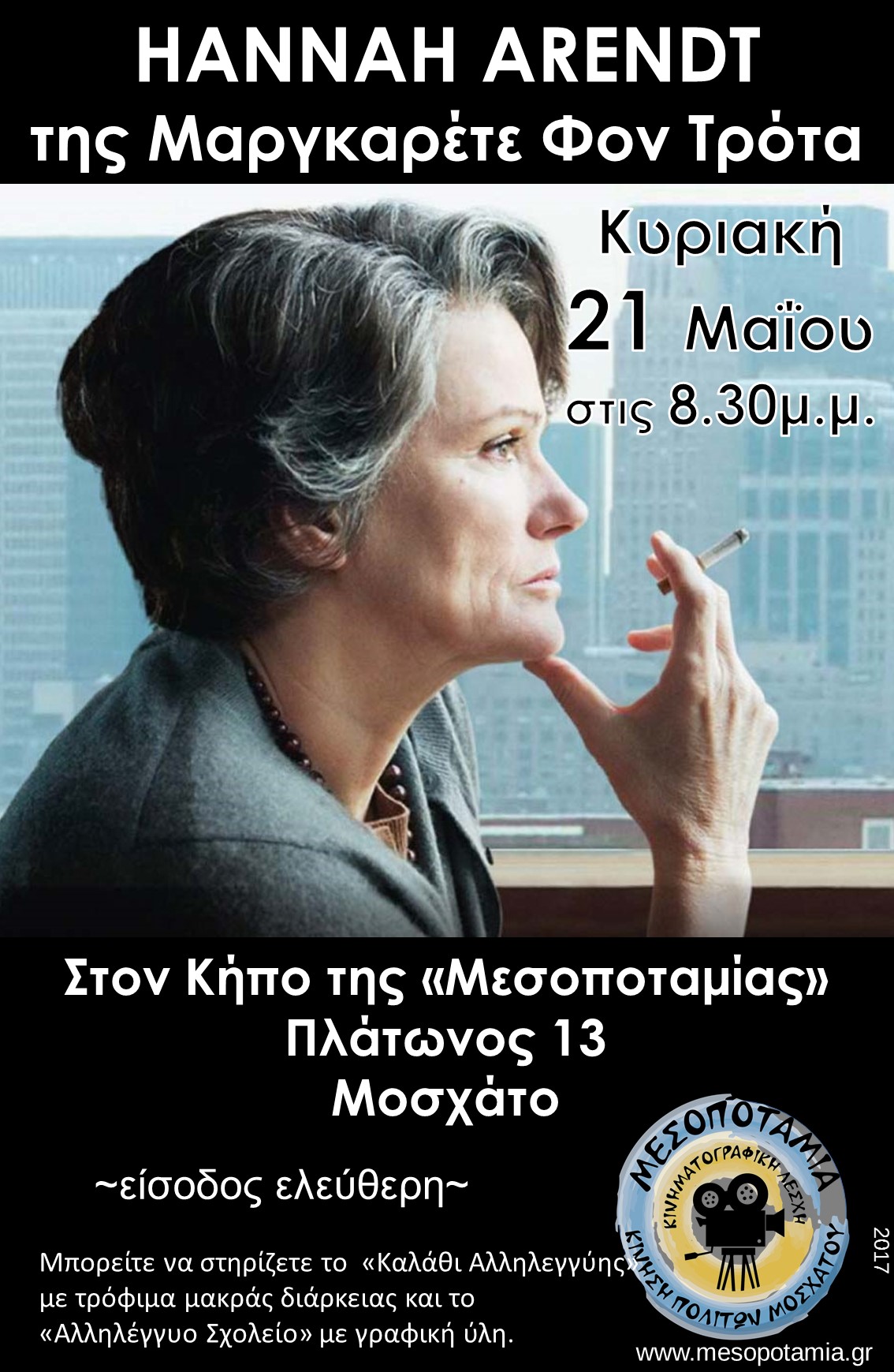 Cinema Club will continue it’s May events, titled “Real Stories in Cinema”, on Sunday, 21st of May by projecting the French film “Hannah Arendt” by Margarette von Trotta.